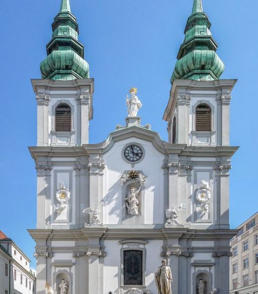 Iglesia de Mariahilf, Viena: fachada, pintura de María Mariahilf https://en.wikipedia.org/wiki/Church_of_Mariahilf